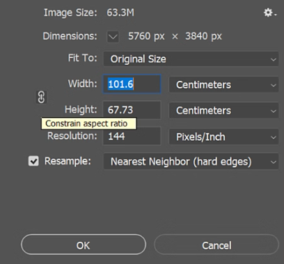 Aspect ratio issues: If you untick the box “Constraint Proportions,” you may stretch/distort the image. The box is ticked, and so always ensure it is, unless you are trying to change proportions.